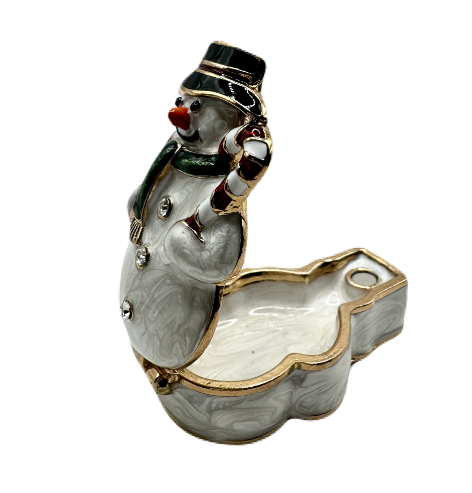 どこか愛嬌のある顔をしたスノーマン。ぷくっとしたフォルムに癒されます。左手に持ったキャンディケーンがアクセントになっています。おしゃれな帽子もポイントです。