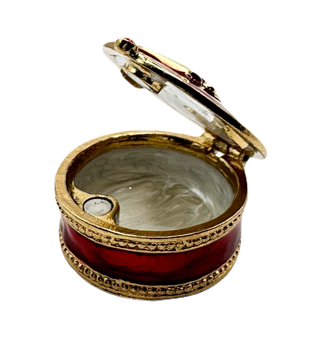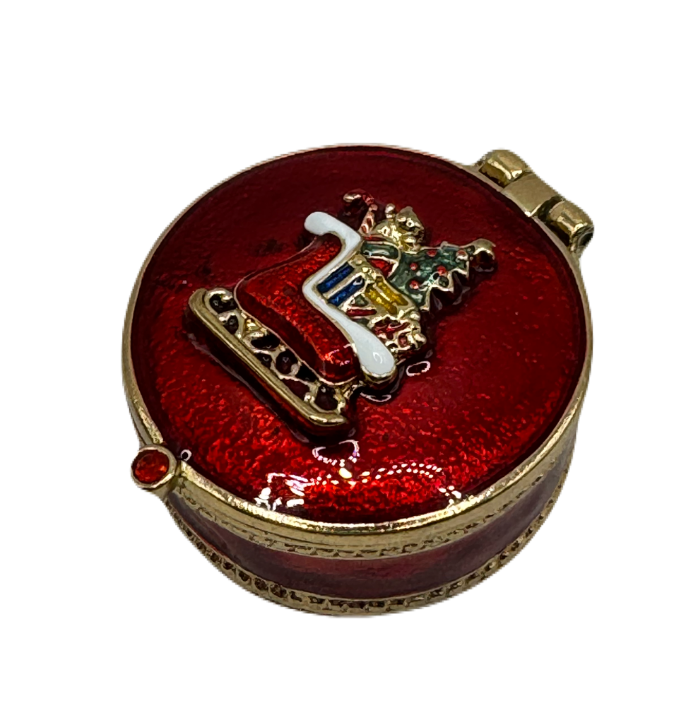 小さいアクセサリーを入れて楽しむ事ができる大きさのケースです。ラウンド型は毎年人気が高く、新しいデザインとしてクリスマスのプレゼントを運ぶスレーの柄が登場しました。