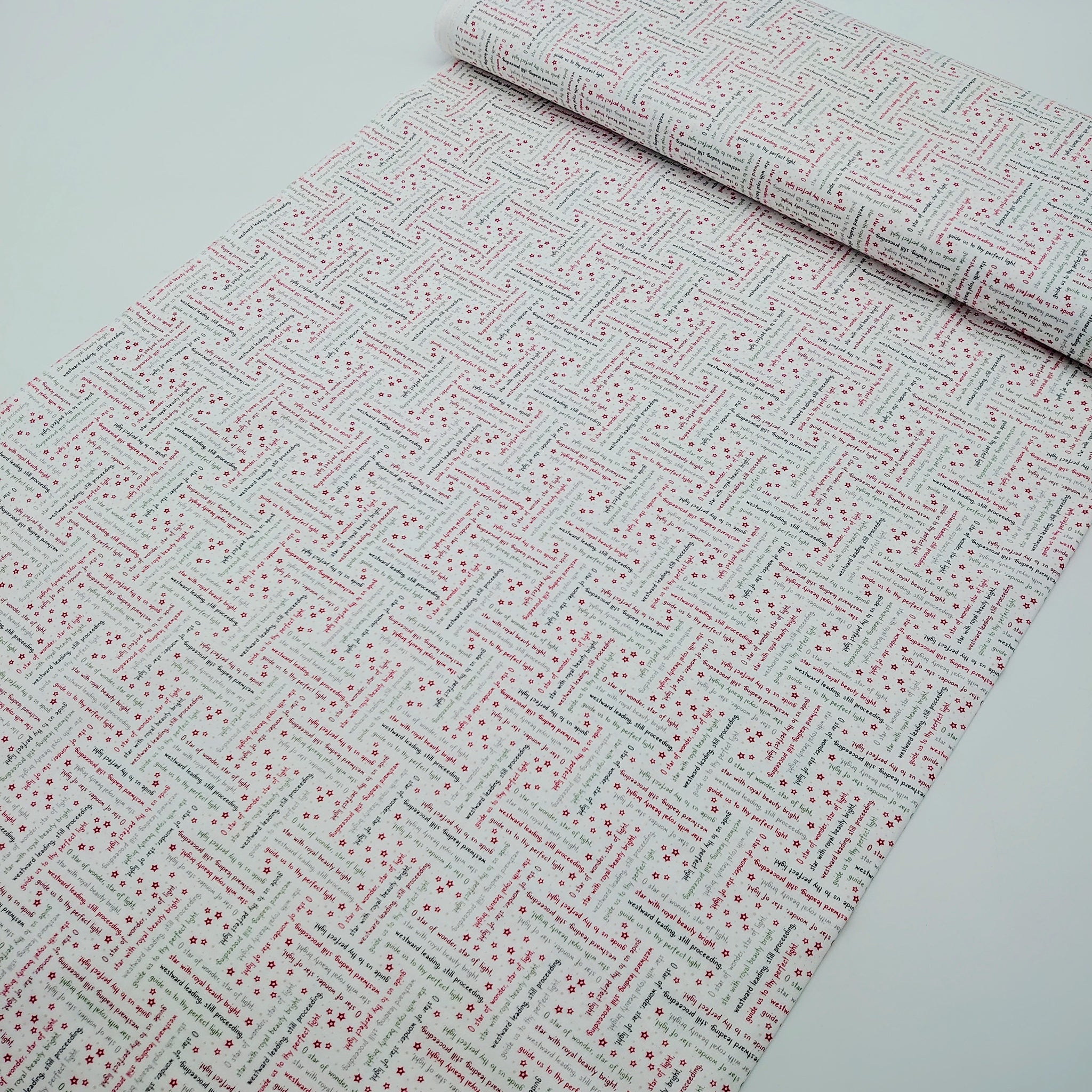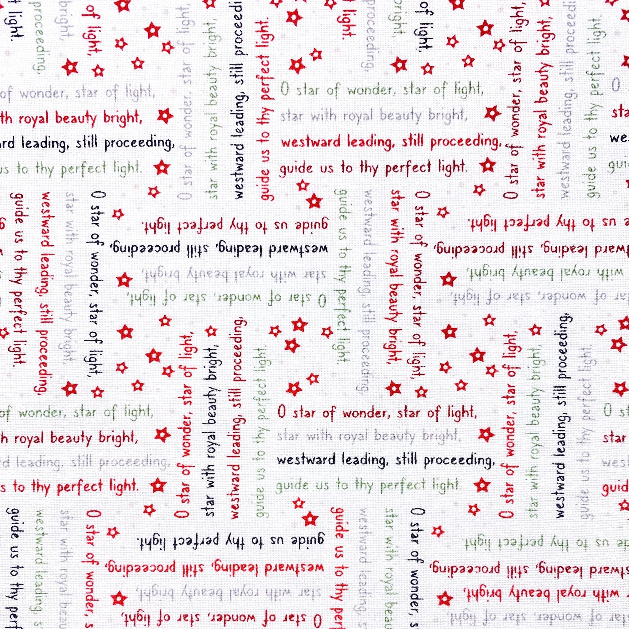 ホワイトの生地に配置された文字は『我らはきたりぬ』というクリスマスキャロルの歌詞が書かれています。